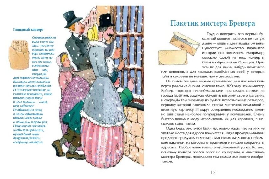 Эта книга в понятной ребёнку форме рассказывает о том, как зародилось письмо и зачем оно стало нужно, как появились первые конверты, печати, марки. В книге есть и про фронтовой треугольник со схемой как его сложить. А вот о работе современной почты: об индексах, современных методах сортировки, видов писем и посылок (авиа, первый класс и т.д.), чем посылка отличается от бандероли и т.д. Вы тут не найдёте. Т.е. реально книга от наскального рисунка до фронтового треугольника. Надеюсь на продолжение.