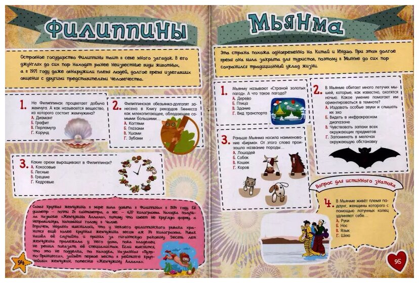 Эта удивительная книга-викторина полностью перевернёт твоё представление о нашей планете. Каждый из тысячи предложенных на её страницах вопросов способен оказаться поводом для знакомства с государством, о котором ты, возможно, даже не слышал: его обычаями, природой, животным миром. Или раскроет неожиданный секрет, казалось бы, уже знакомой соседней страны. В лучших традициях интеллектуальных игр ты сможешь сложить географическую мозаику каждого континента, проверить своё умение читать карты, составить забавный палиндром. А с иронией составленные вопросы и красочные иллюстрации-подсказки не раз вызовут улыбку и добавят к новым знаниям хорошее настроение.