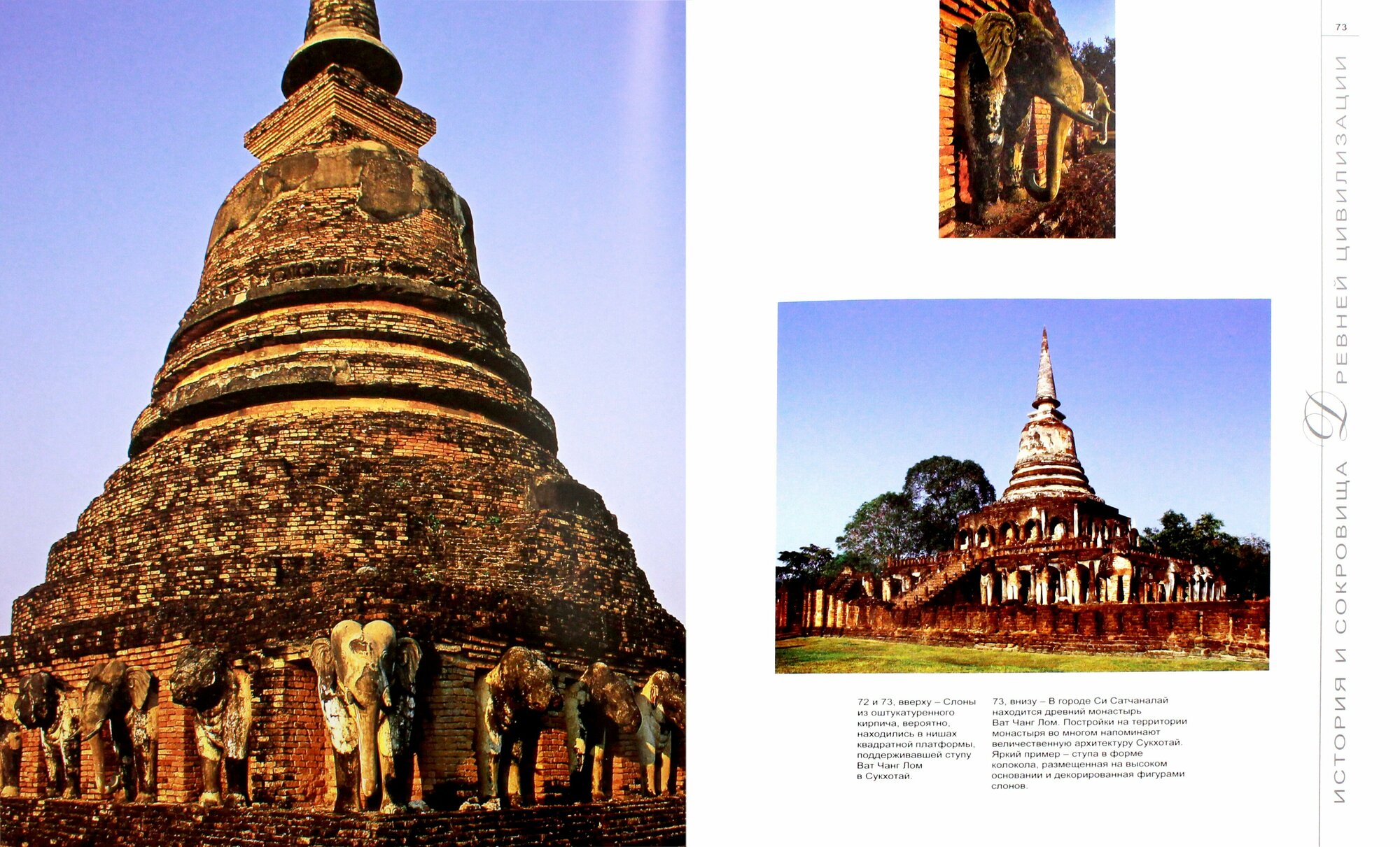 на русском языке аналогичных книжек не знаю, на английском так же по Тайланду книг мало. Текст хороший и интересный, для популярного издания вполне полно описывает основные периоды и памятники (Дваравати, Сукотай, Аютайя, Лан На, Бангкок). Бумага хорошая, печать очень хорошая (но это не художественный альбом). Фотографии очень хорошие. Главный недостаток, то традиции, - это перевод и сомнительное редактирование. Слова типа "полузакрытые ресницы", "гении места" - так не говорят