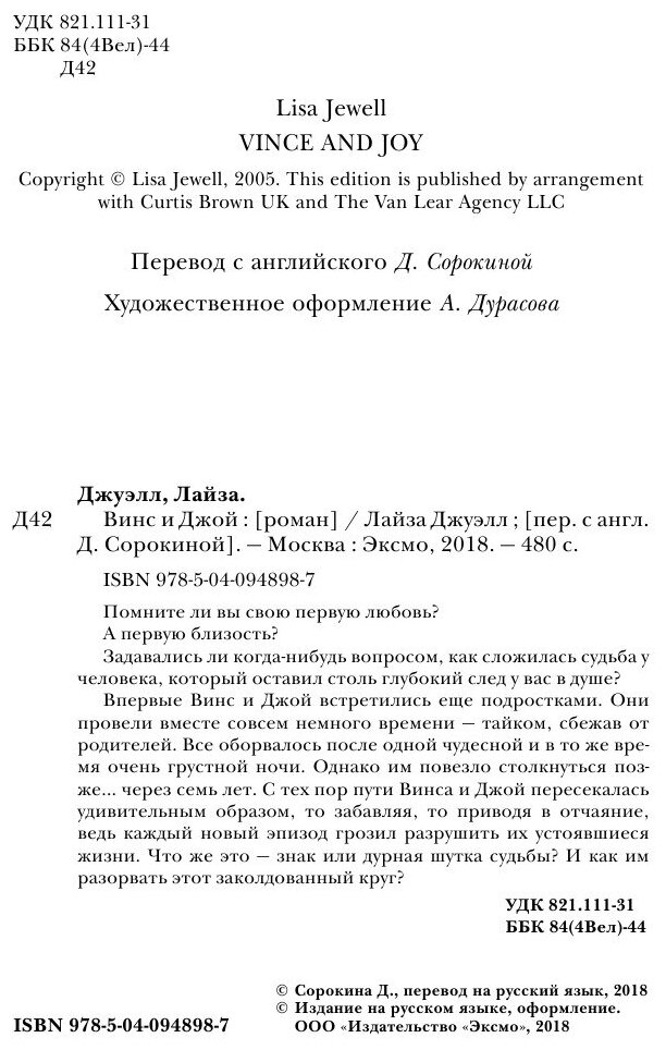Сервис сравнения цен СкидкаГИД предлагает сравнить цены на товар «Книга: Винс и Джой (Сорокина Дарья Сергеевна (переводчик), Джуэлл Лайза); Эксмо, 2018»