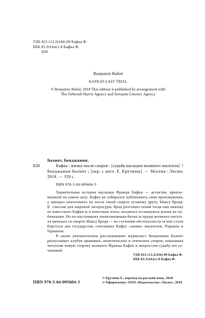 Кафка. Жизнь после смерти. Судьба наследия великого писателя (Кручина Евгений Николаевич (переводчик), Балинт Бенджамин); Эксмо, 2018