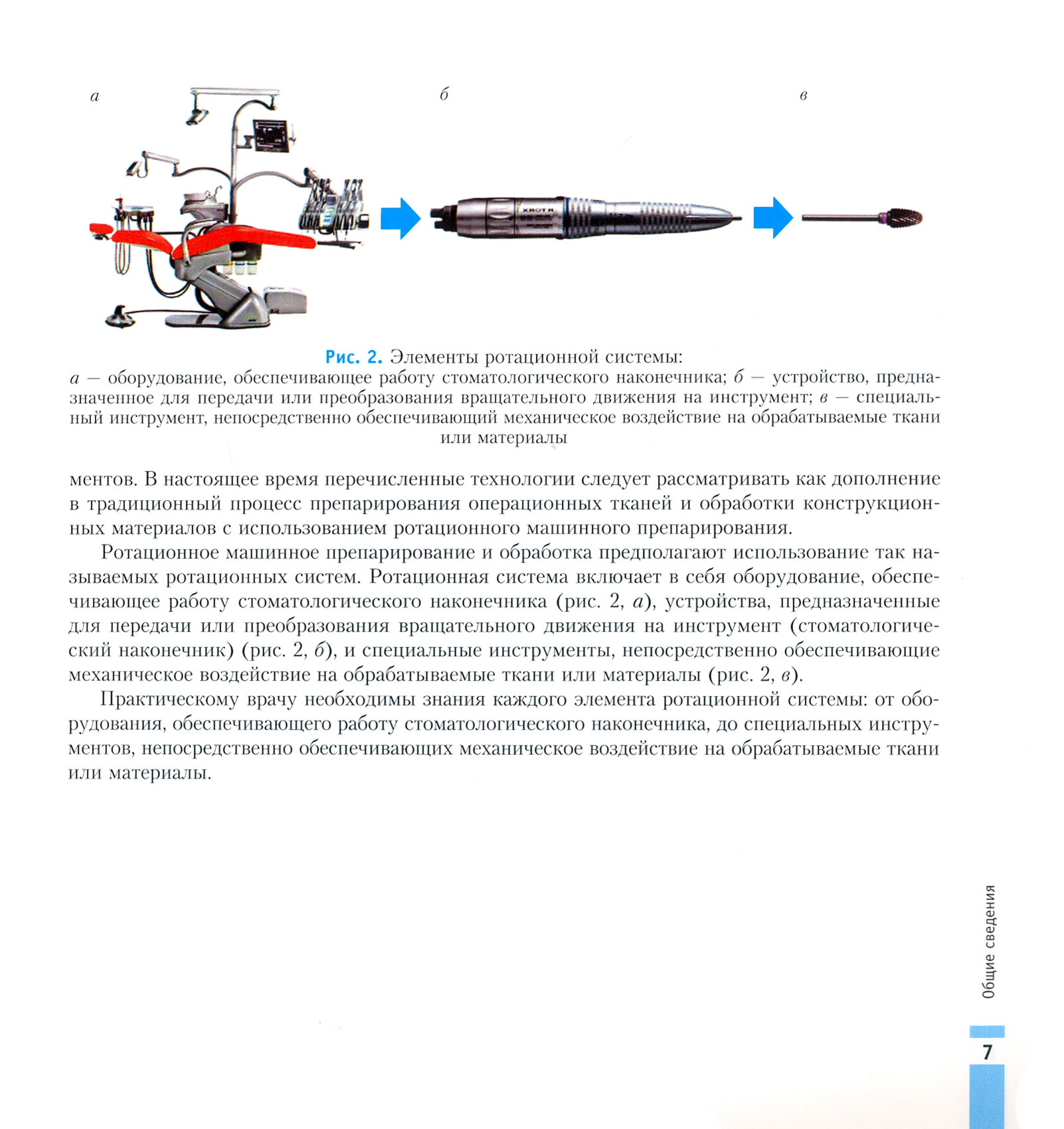 В справочнике представлены основные технические характеристики, назначение и правила эксплуатации ротационных систем, применяемых в стоматологии для препарирования зубов и для обработки конструкционных и пломбировочных материалов. Подробно рассматриваются области применения, порядок эксплуатации и уход за элементами ротационных систем.