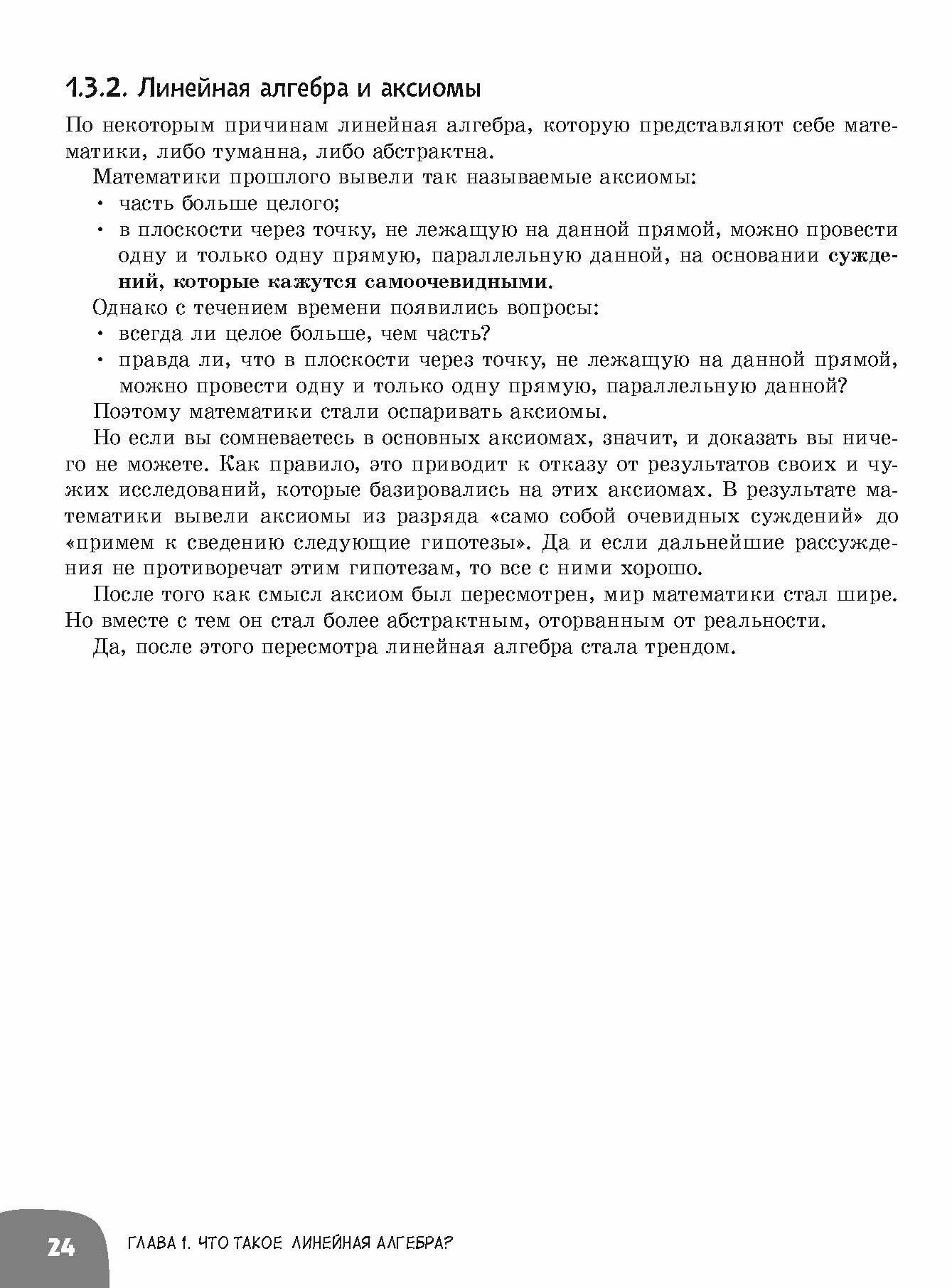 Линейная алгебра, которую "сочиняют" математики, либо туманна, либо абстрактна, а большинство учебников и курсов подразумевают длинные вычисления и подробные доказательства. Это скучно и непродуктивно!