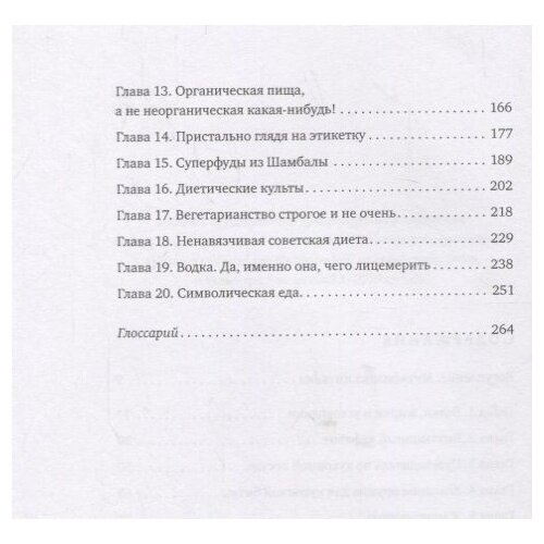 Книга, шапочно затрагивающая некоторые базовые аспекты питания. Строго говоря, непосредственно о пищевой химии и том, что такое правильное питание в современном научном представлении, здесь сказано совсем не так много и довольно поверхностно. Зато много обширных экскурсов в историю, кои приправлены отсылками к литературным произведениям, собственно кулинарией и личными кулинарными пристрастиями авторов.