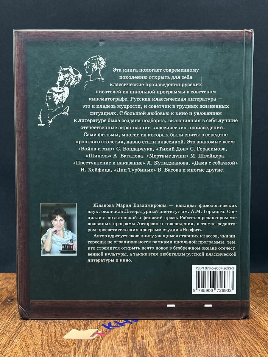 Эта книга помогает современному поколению открыть для себя классические произведения русских писателей из школьной программы в советском кинематографе. Русская классическая литература - это и кладезь мудрости, и советчик в трудных жизненных ситуациях. С большой любовью к кино и уважением к литературе была создана подборка, включившая в себя лучшие отечественные экранизации классических произведений. Сами фильмы, многие из которых были сняты в середине прошлого столетия, давно стали классикой. Это знакомые всем "Война и мир" С. Бондарчука, "Тихий Дон" С. Герасимова, "Шинель" А. Баталова, "Мертвые души" М. Швейцера, "Преступление и наказание" Л. Кулиджанова, "Дама с собачкой" И. Хейфица, "Дни Турбиных" В. Басова и многие другие.