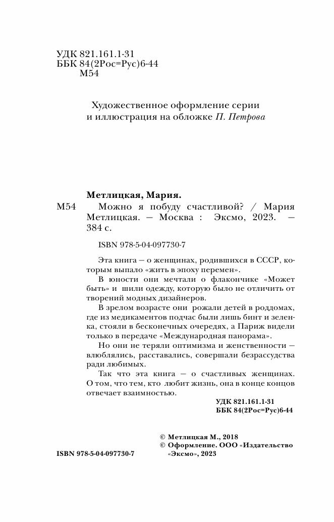 Можно я побуду счастливой? (Метлицкая Мария Робертовна); ООО "Издательство "Эксмо", 2018