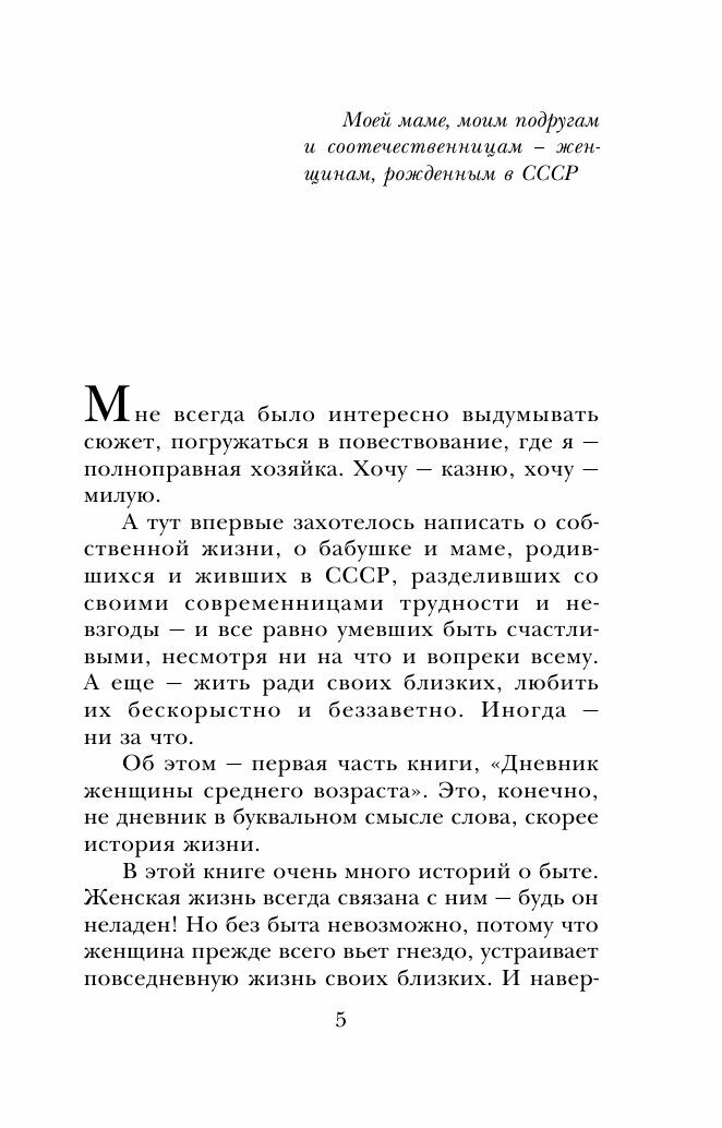 Одна из лучших книг Метлицкой. Поэтому в продаже уже не осталось этой книги в твердом преплете - все раскуплено. Но и в мягком она тоже хороша. Книга в которой нет вымысла, книга которая будет близка и понятна каждой жещине родившейся в Советском Союзе. Две женские судьбы, в чем-то похожие, в чем-то разные. Легкий слог. Прекрасная книга для подарка женщине старше пятидесяти лет. Для тех кто ценит мемуарную литературу.