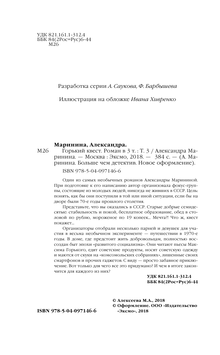 Книга: Горький квест. Том 3 (Александра Борисовна Маринина); Эксмо, 2019