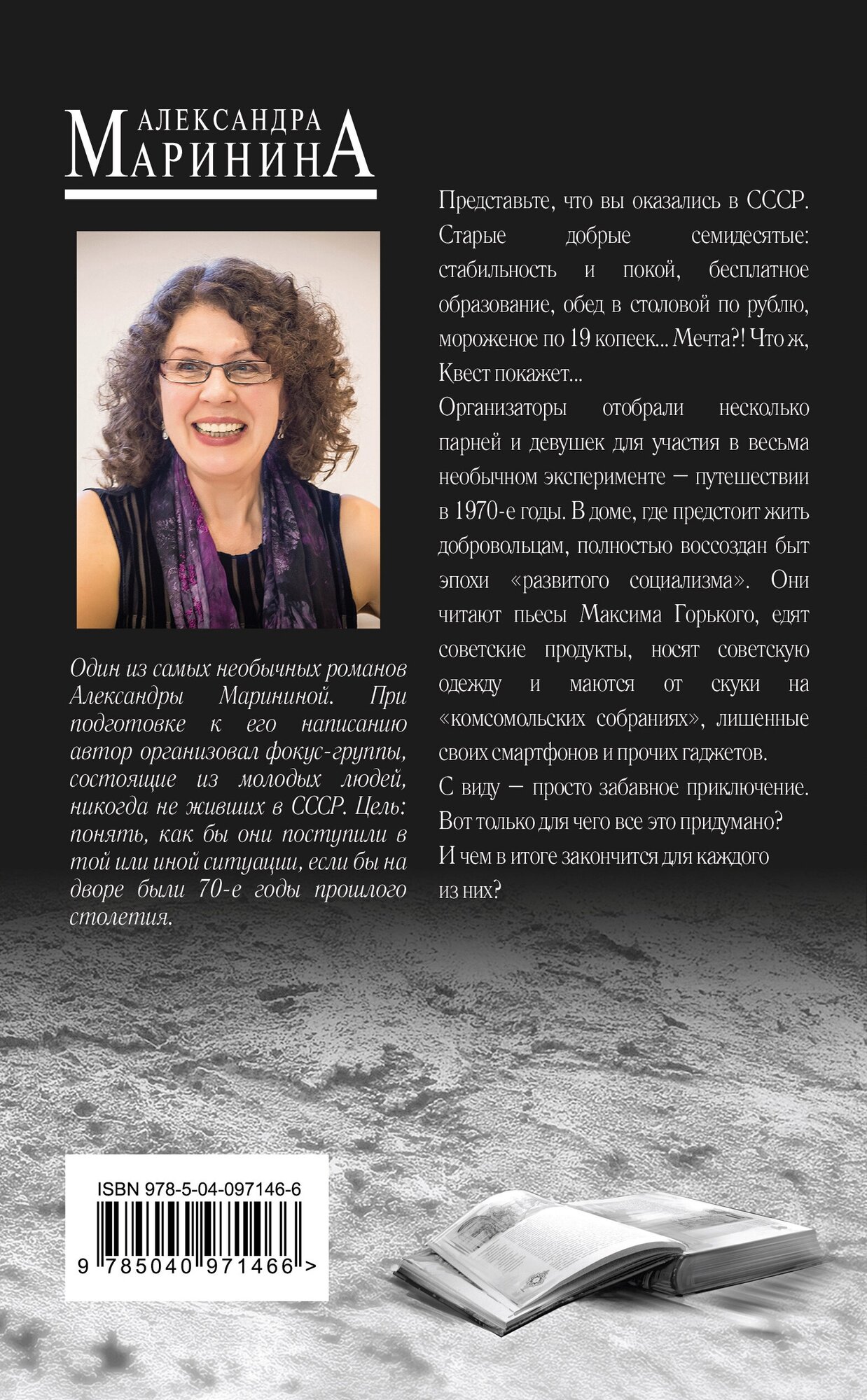 Один из самых необычных романов Александры Марининой. При подготовке к его написанию, автор организовал фокус-группы, состоящие из молодых людей, никогда не живших в СССР. Цель: Понять, как бы они поступили в той или иной ситуации, если бы на дворе были 70-е годы прошлого столетия.