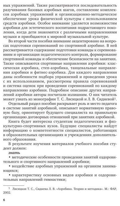 Настоящее учебное пособие знакомит читателей с возможностями аэробики для оздоровления и физического развития подрастающего поколения. В нем последовательно раскрывается влияние аэробных упражнений на организм школьника, последовательность разучивания базовых аэробных шагов, описываются спортивные направления аэробики и рассматриваются правила соревнований и система оценок при проведении соревнований по каждому направлению аэробики. Книга содержит большое количество иллюстраций, которые помогут студентам освоить материалы пособия.