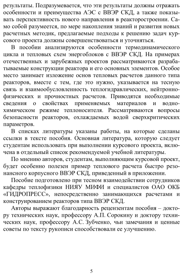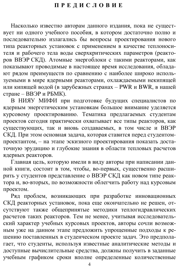 Рассмотрены термодинамические циклы и тепловые схемы атомных энергоблоков с ядерными реакторами 4-го поколения ВВЭР СКД. Приводятся основные характеристики и конструкции данного типа реакторных установок, разрабатываемых в российских и зарубежных проектах. Обсуждаются преимущества и проблемы создания реакторов, охлаждаемых водой сверхкритических параметров. Большое внимание уделено особенностям теплового расчета реакторов СКД, связанным с сильным изменением свойств воды вблизи критической точки.