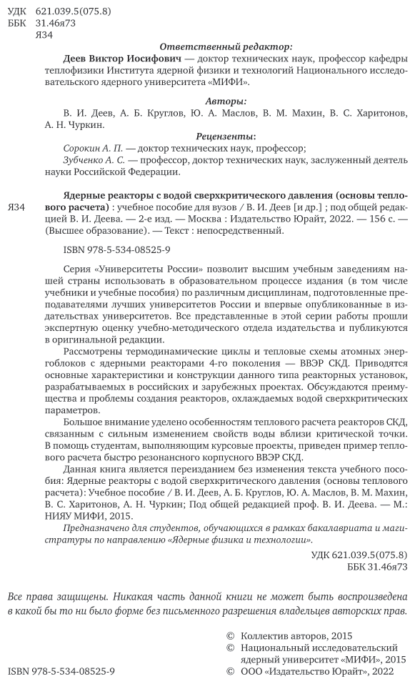 На сегодняшний день товар «Книга: Ядерные реакторы с водой сверхкритического давления (основы теплового расчета). Учебное пособие (Андрей Николаевич Чуркин); ЮРАЙТ, 2018» можно купить с кешбеком в 1 магазине: ЛитРес