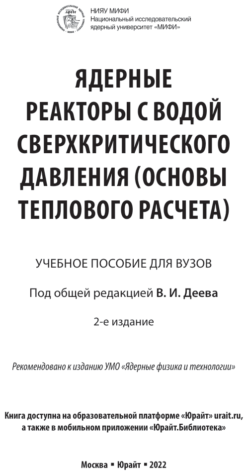 Ядерные реакторы с водой сверхкритического давления (основы теплового расчета). Учебное пособие (Андрей Николаевич Чуркин); ЮРАЙТ, 2018