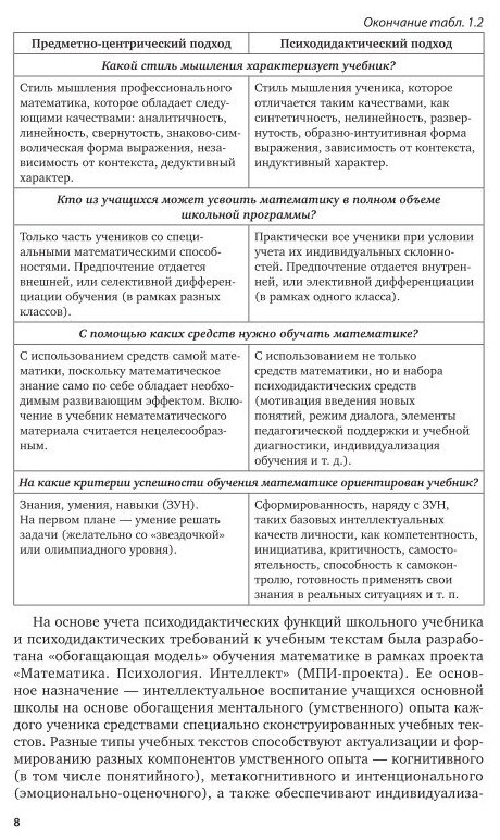 В книге обсуждается новый подход к проблеме современного школьного учебника как полифункциональной психодидактической системы. В качестве приоритетной задачи школьного образования рассматривается интеллектуальное воспитание учащихся средствами содержания образования. Описывается «обогащающая модель» обучения, в рамках которой разработана серия учебных книг по курсу математики для 5-9-х классов. Ее основное назначение - обогащение умственного (когнитивного, понятийного, метакогнитивного, эмоционально-оценочного) опыта учащихся и индивидуализация обучения на основе учета их познавательных стилей с помощью специально сконструированных учебных текстов. Анализируется развивающая роль учебных текстов разного типа.