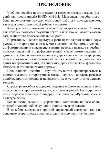 Цель данного пособия научить студентов ориентироваться в нормах русского литературного языка, научить находить речевые ошибки, прогнозировать и исправлять их в устных и письменных текстах. Большинство заданий и упражнений составлено на базе общенаучной и экономической лексики. В пособии содержится краткий справочный материал.