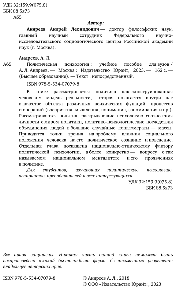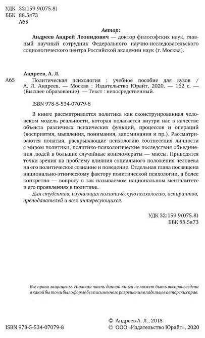Сервис сравнения цен СкидкаГИД предлагает сравнить цены на товар «Книга: Политическая психология. Учебное пособие для академического бакалавриата (Андрей Леонидович Андреев); ЮРАЙТ, 2018»