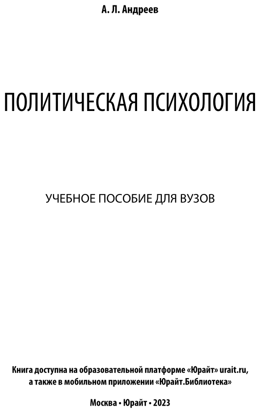 Политическая психология. Учебное пособие для академического бакалавриата (Андрей Леонидович Андреев); ЮРАЙТ, 2018