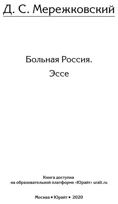 Книга: Больная Россия. Эссе (Мережковский Дмитрий Сергеевич); ЮРАЙТ, 2022