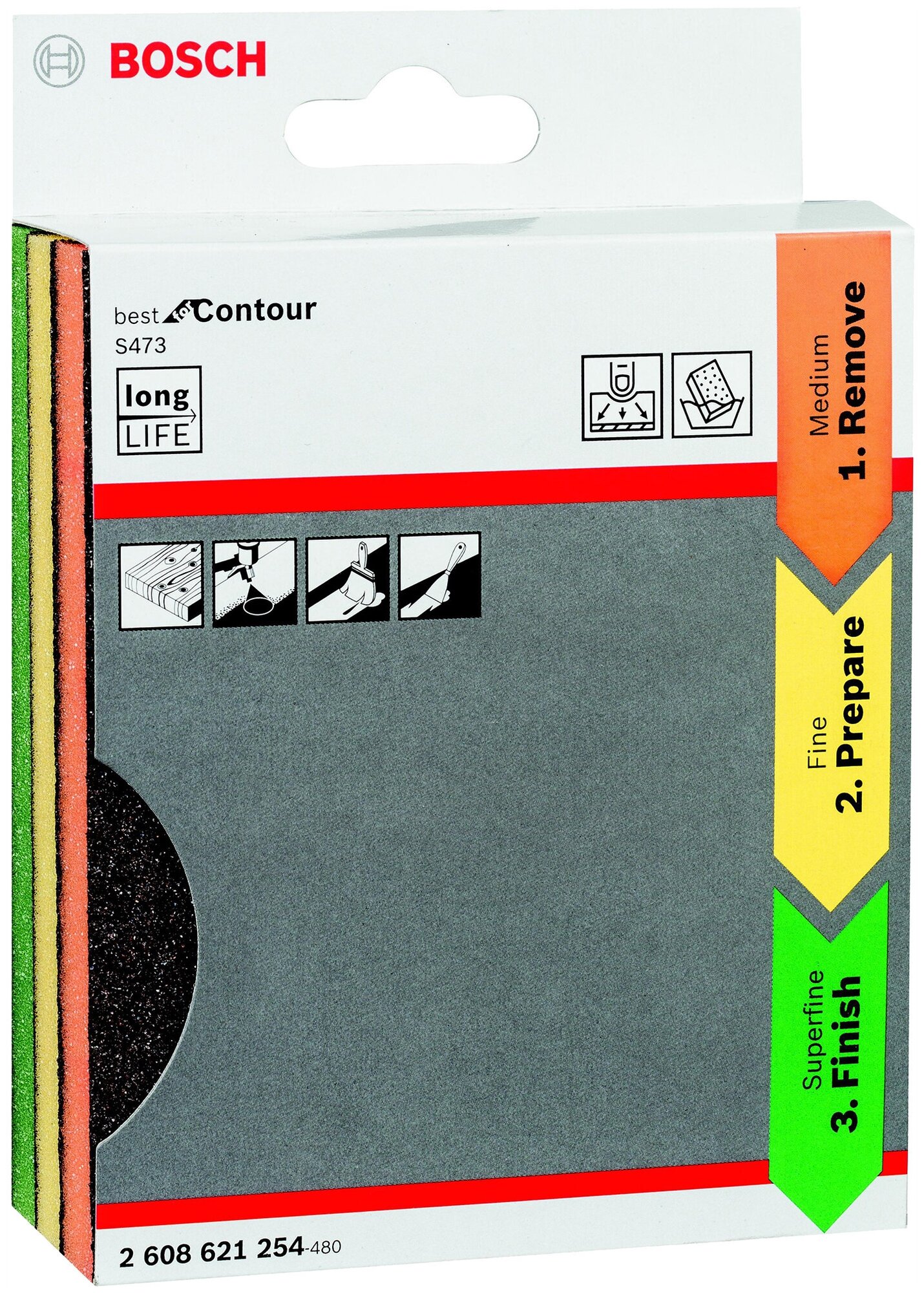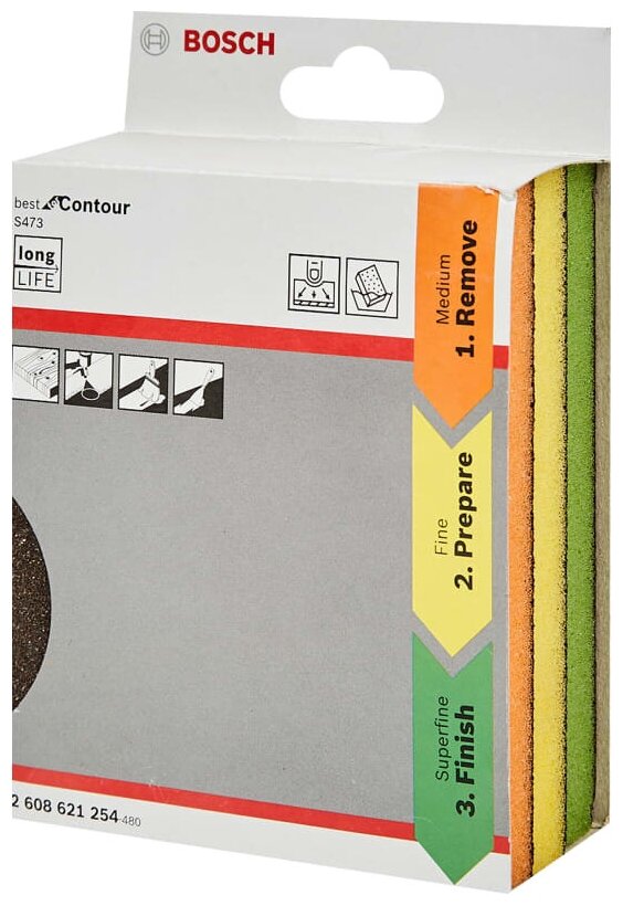 Губка шлифовальная Bosch 2608621254 поставляется комплектом из трех принадлежностей для ручного шлифования и полировки древесных материалов. Абразивные губки имеют размеры 98x120x13 мм и отличаются разной степенью дисперсности абразива, что позволяет применять их для зачистки, подготовительной или финишной обработки поверхности древесины или лакокрасочных покрытий. Изделия можно применять как при сухом, так и при моком шлифовании заготовок. Составляющие комплекта предлагаются в картонной упаковке. Производитель не рекомендует эксплуатировать такую оснастку при шлифовании с использованием растворителя. Губки имеют обширную сферу применения и позволяют выполнять обработку труднодоступных участков заготовки из древесины или древесного материала.