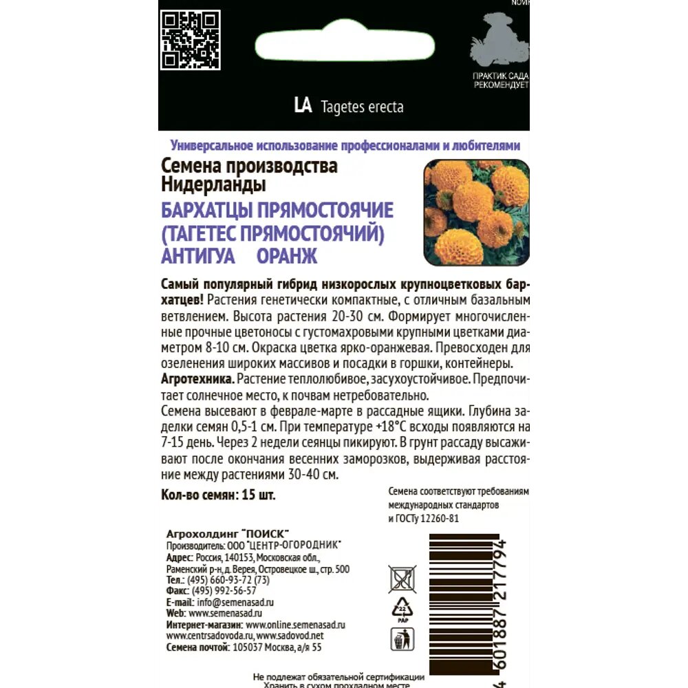 Сервис сравнения цен СкидкаГИД предлагает сравнить цены на товар «Семена цветов ПОИСК Семена Бархатцы Оранж 15 шт»