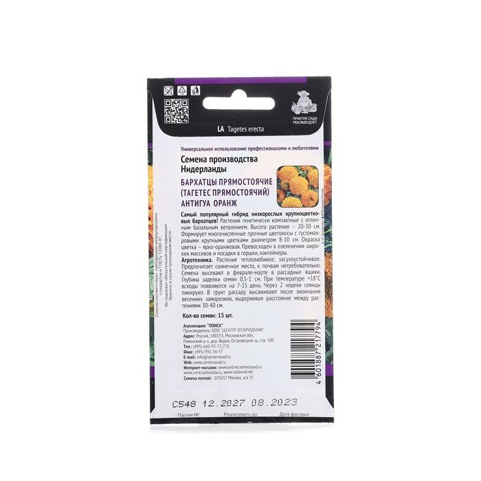 Семена цветов ПОИСК Семена Бархатцы Оранж 15 шт