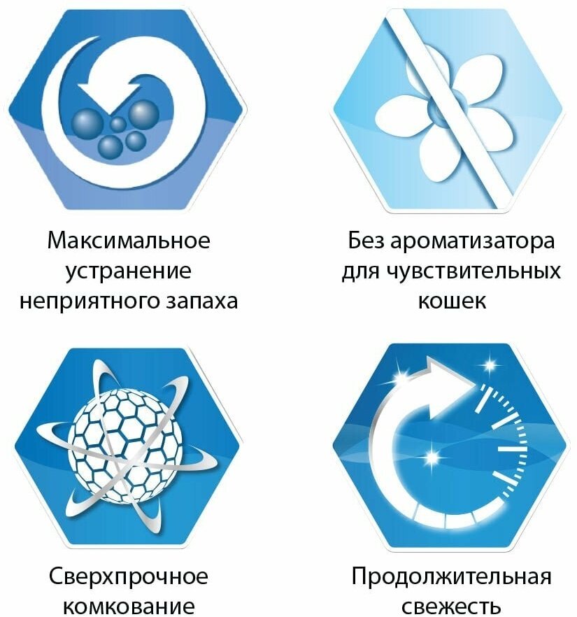 Наполнитель комкующийся без ароматизатора. Формула, максимально наносящая удар по неприятным запахам, для кошек и их хозяев, чувствительных к посторонним запахам. Антибактериальные компоненты, входящие в состав наполнителя, уничтожают бактерии, а активированный уголь блокирует остатки неприятных запахов. И ароматизатор уже не нужен. Упаковки по 6 кг и 10 кг.