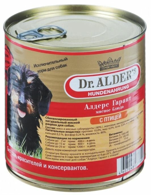 Влажный корм Dr.Alder's Garant для взрослых собак птица 750г (7739)
