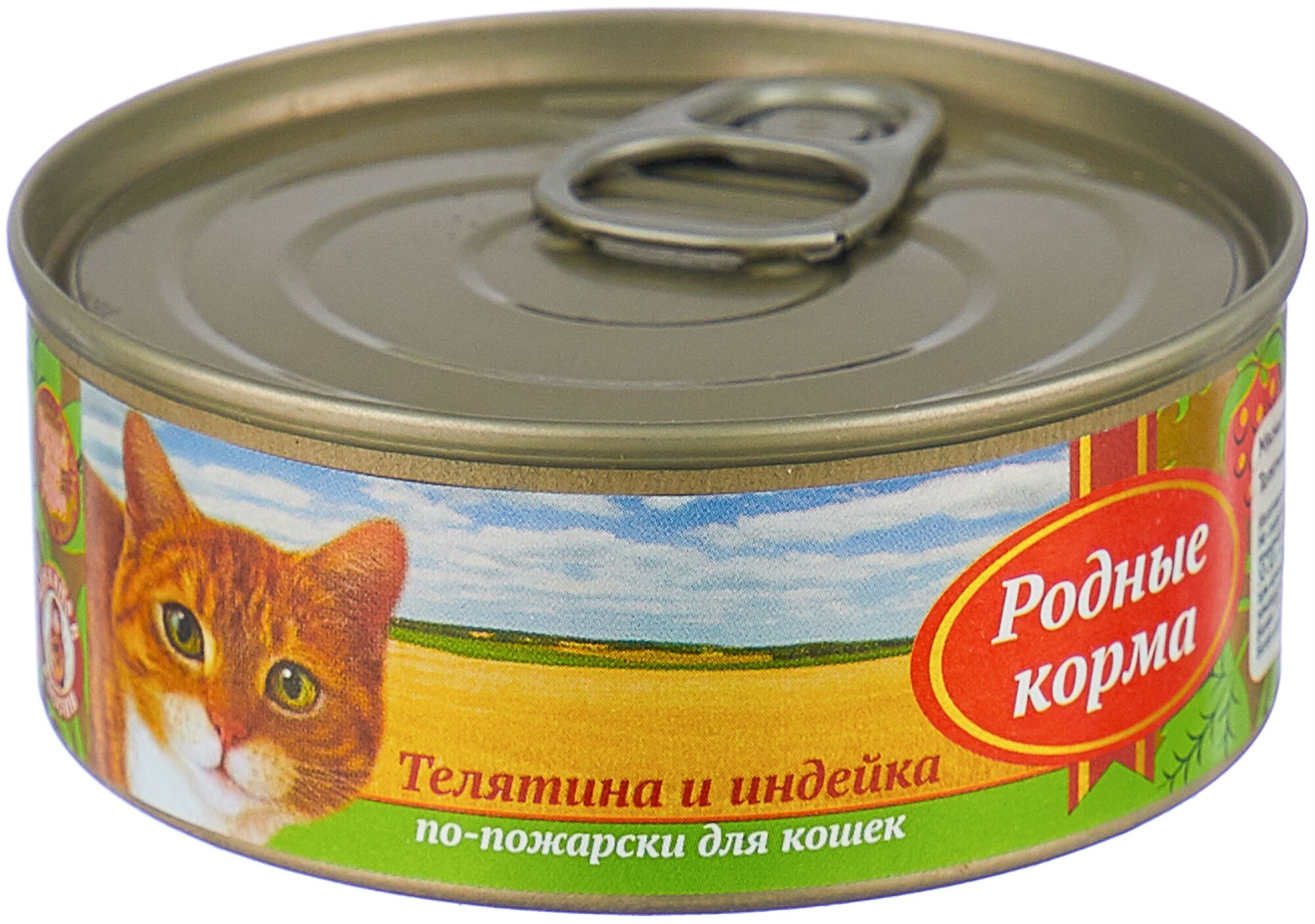 Влажный корм Родные корма для взрослых кошек телятина и индейка по-пожарски 100г (61957)