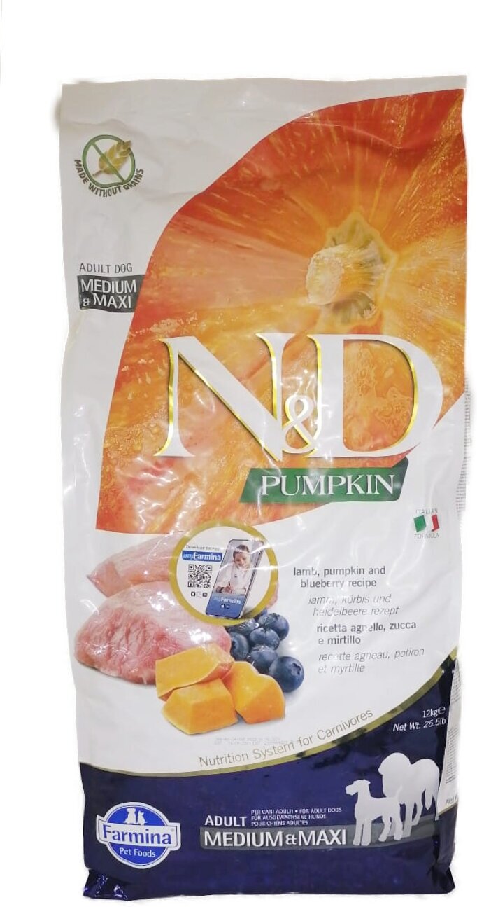 Формула N&D Pumpkin - Lamb & Blueberry - это новая линия без зерновых, созданная в Италии, с уникальными питательными характеристиками. N&D Pumpkin использует оригинальные ингредиенты, чтобы предложить вашей собаке сбалансированную и полноценную диету без злаков и искусственных консервантов. 96% белка животного происхождения, 0% искусственных консервантов, 0% зерна. Мясо ягненка богато незаменимыми жирными кислотами и конъюгированной линолевой кислотой с лучшим соотношением между безжировой массой и жиром. Система вакуумного упаковывания - уникальная технология, которая позволяет добавлять витамины после приготовления, что продлевает срок их хранения.