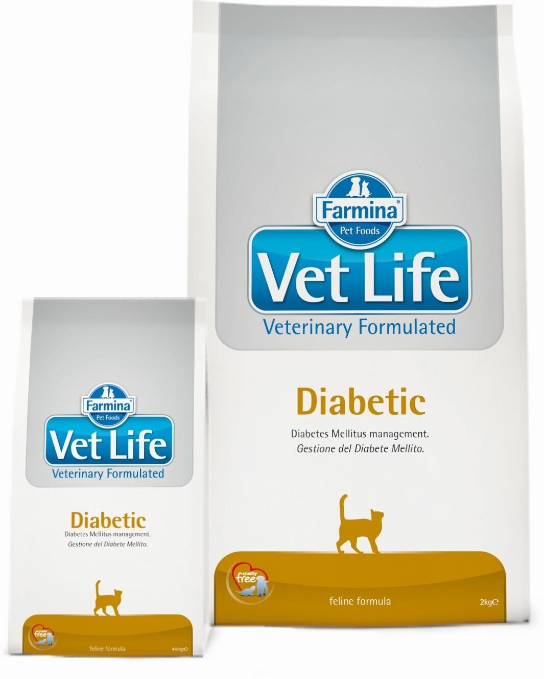 Farmina vet life diabetic - диетическое питание для кошек при сахарном диабете. Состав разработан с учетом особых потребностей кошек с диагнозом сахарный диабет. Основной ингредиент - дегидратированное куриное мясо. Производитель - Farmina Pet Foods.