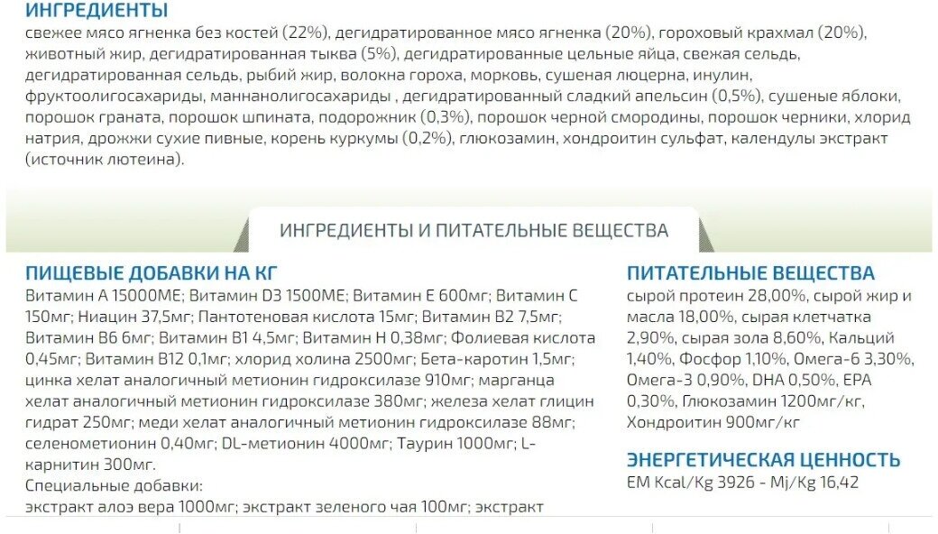 | Состав корма | Ягненок |