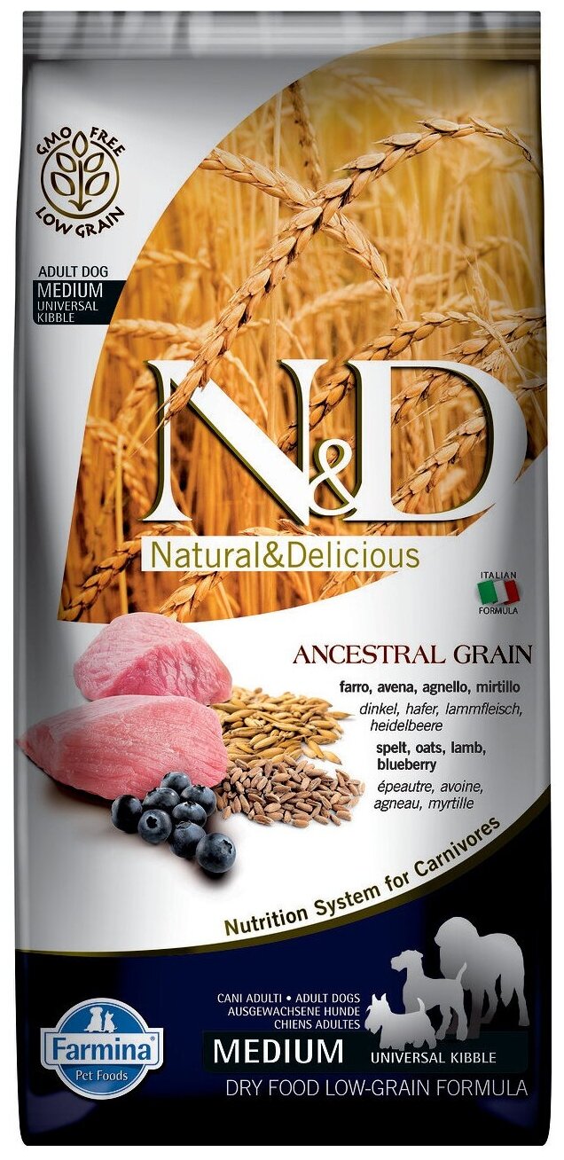 Сухой корм Farmina N&D low grain lamb & blueberry adult medium - полнорационный сбалансированный корм с низким содержанием зерновых для средних пород собак. В этом вкусном и полезном меню - отборные мясные ингредиенты, фрукты, овощи, ягоды и травы. Отличный рацион для собак с повышенной чувствительностью к зерновым.