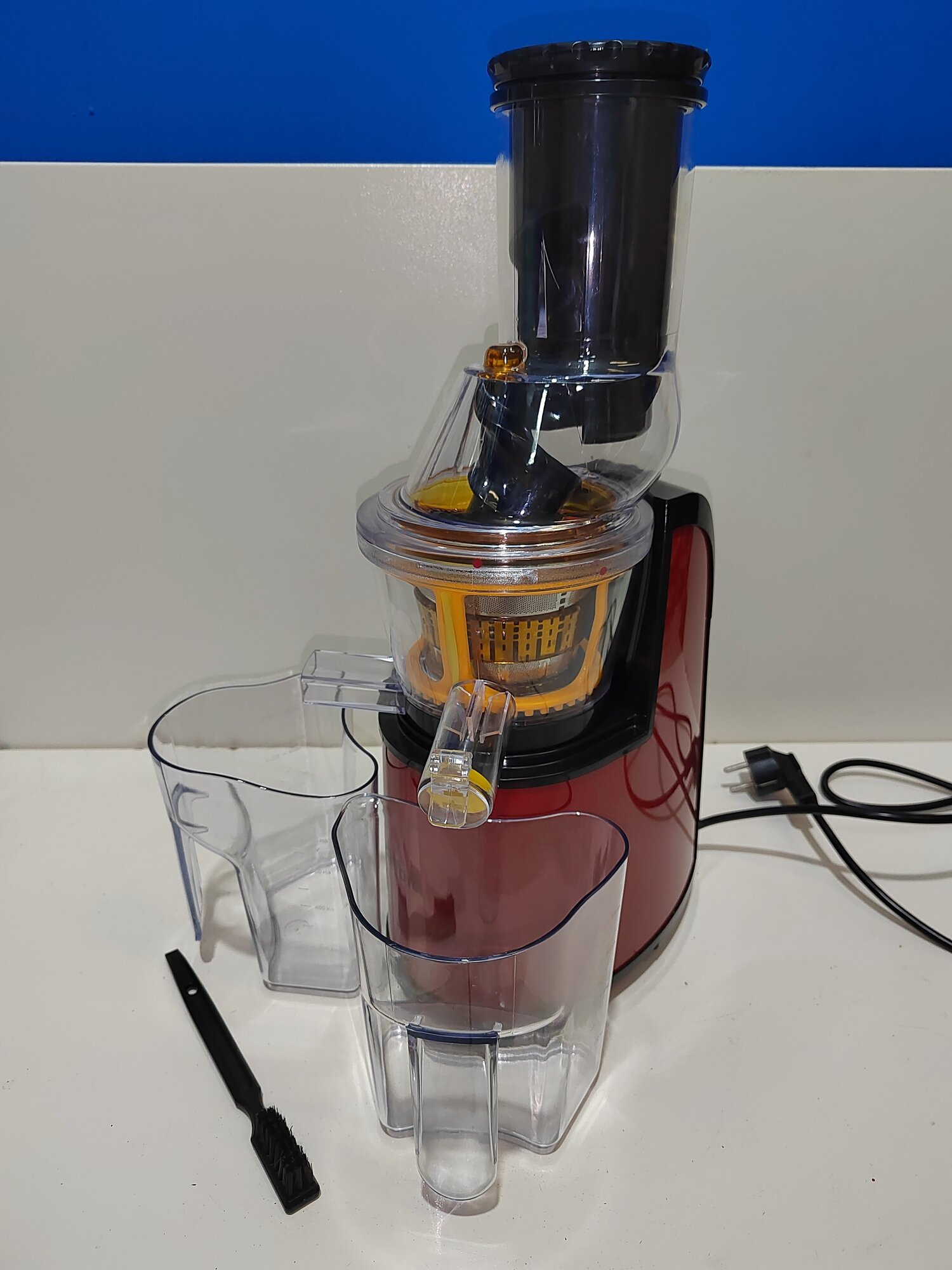 Первый, предыдущей модели, купили прошлым летом на дачу для «борьбы» с большим урожаем яблок. Всё лето-осень пили литрами яблочный сок. Сок получается с мякотью, а не прозрачный, как в центрифужных. Вроде как при шнековом отжиме сок можно пару дней хранить в холодильнике без особых потерь витаминов, поэтому делали немного впрок, чтобы лишний раз не мыть.