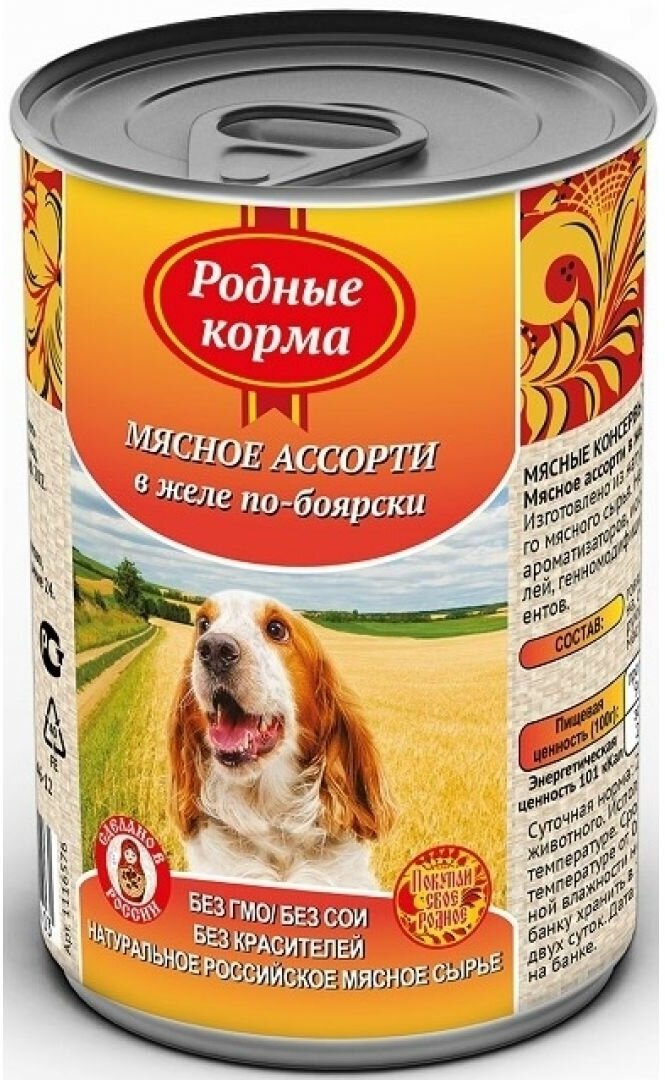 Влажный корм Родные корма Елец для взрослых собак мясное ассорти в желе по боярски 970г (66053)