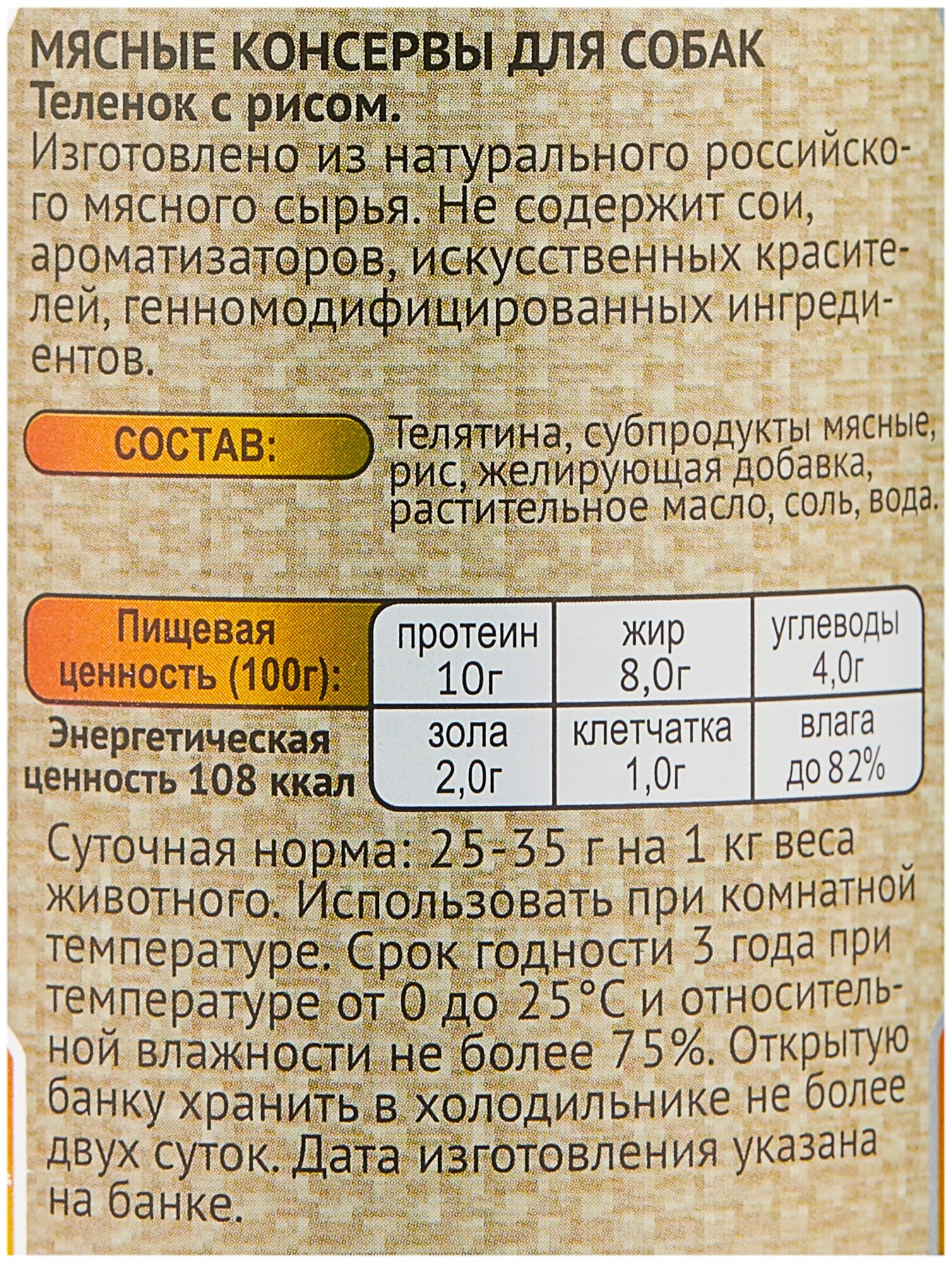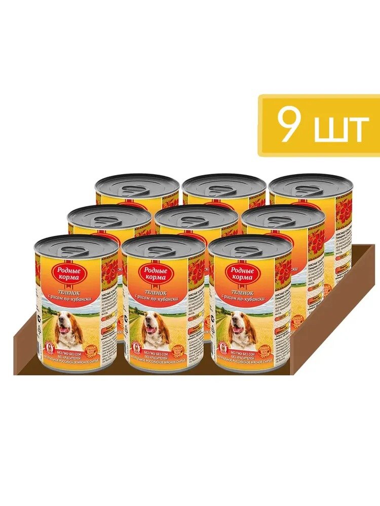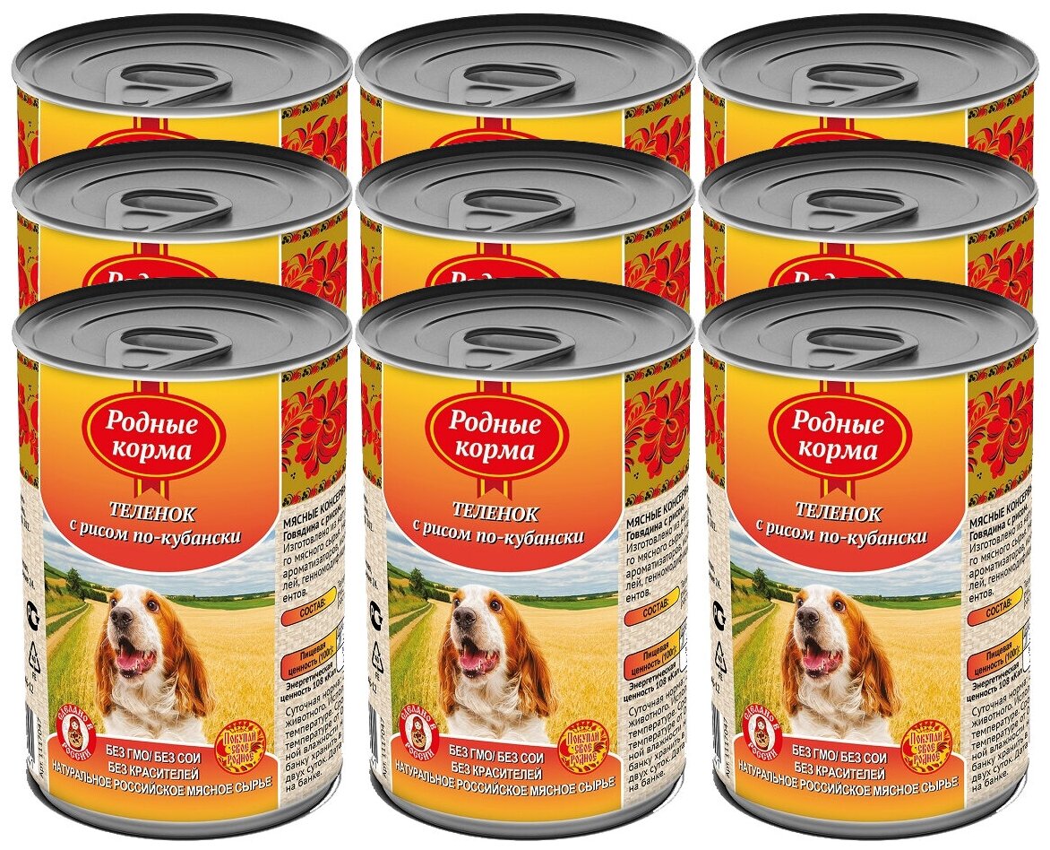Влажный корм Родные корма Елец для взрослых собак теленок с рисом по кубански 410г (66045)