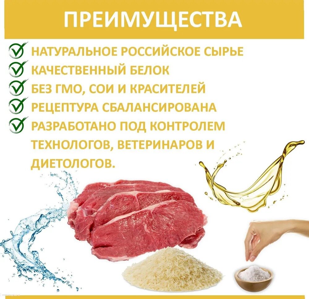 | Вкус корма | телятина; рис |