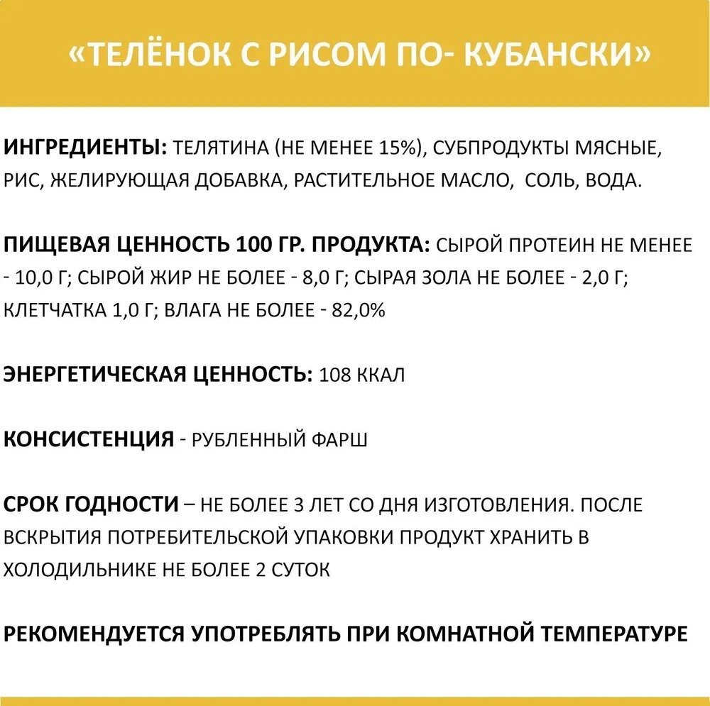 Представляем Вашему вниманию новую серию Мясное угощение уже полюбившихся консервов «Родные корма», которые все больше и больше завоевывают доверие и популярность владельцев собак и кошек.В рецептуру вошли самые «вкусные» ингредиенты, которые так любят наши четвероногие дегустаторы. Консервы рекомендованы для ежедневного употребления как в чистом виде, так же и смешивании с овощами и кашами.Широкий вкусовой ассортимент позволить вам разнообразить вкусовые пристрастия и дать право выбора нашему «строгому потребителю».Наши консервы можно смешивать с качественным сухим кормом «Родные корма», который скоро будет представлен на рынке, отличающийся своим составом и подходом к составляющим ингредиентов от существующих отечественных кормов.В рецептуре использованы только натуральные российские мясные компоненты, не содержат сои, ароматизаторов искусственных красителей, ГМО.Каждая банка с индивидуальной, удобной крышкой.Консервы Мясное угощение обладают привлекательным ароматом, перед которым ваш питомец не устоит.Принцип правильного кормления!