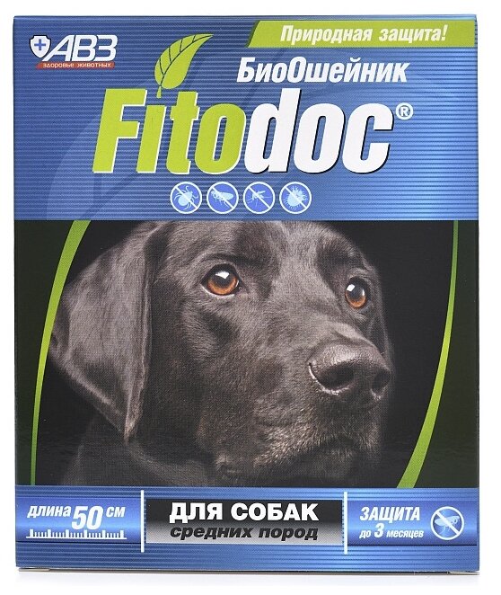 Ошейник репеллентный АВЗ для взрослых собак средних пород Фитодок 50см (54298)