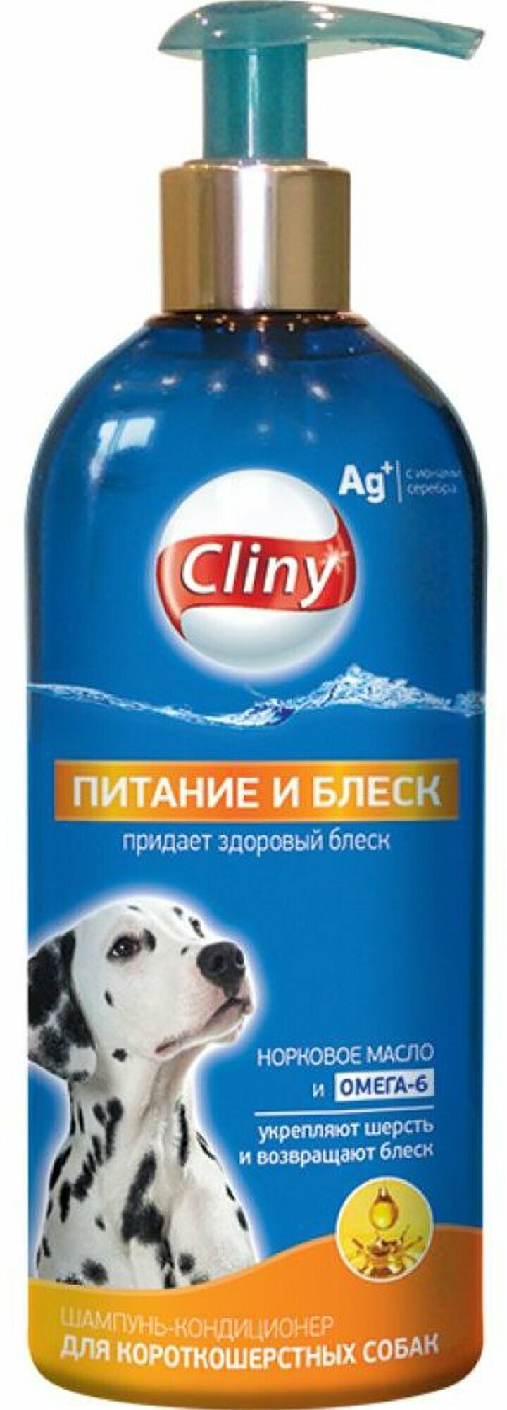 Шампунь-кондиционер Cliny Питание и блеск разработан специально для короткошёрстных собак: