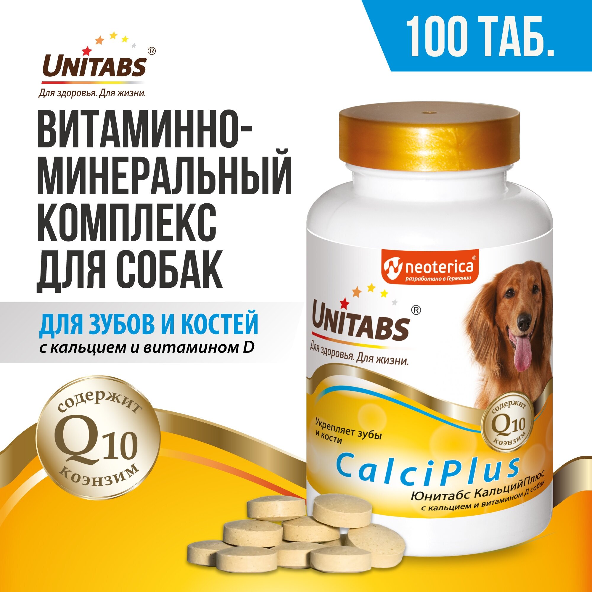 Unitabs – это серия витаминно-минеральных комплексов для собак всех возрастов и пород, которые содержат коэнзим Q10 и все необходимые витамины, макро- и микроэлементы.Формулы витаминно-минеральных комплексов Unitabs разработаны совместно с фирмой Veterinary Bio (Германия) и соответствуют европейскому стандарту качества.CalciPlus с кальцием, фосфором и витамином Д, 100 таб.Укрепляет костную ткань и зубы. Способствует активному росту и развитию.Юнитабс КальцийПлюс применяют для укрепления и оптимального развития костной ткани и зубов у щенков с 3-недельного возраста, а также у взрослых и стареющих собак при показаниях. Добавку вводят в корм собакам или задают перорально с руки, ежедневно из расчета 1 таблетка на 5 кг массы тела. Курс применения не ограничен.