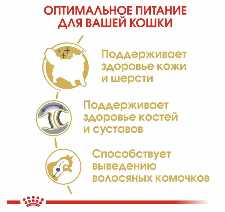 Сибирская кошка - национальное достояние России! Этот образ кажется знакомым с детства: крупная пушистая кошка обладающая дружелюбным характером. В старину – символ домашнего уюта, охотница на мышей и героиня детских сказок, а в наши дни – одна из наиболее популярных пород и «звезда» международных выставок. Страна происхождения: Россия. Эта крупная кошка, издавна живущая в России в естественных условиях, появилась в результате скрещивания домашних кошек, завезенных в Сибирь, и диких лесных котов. В 1998 году был утвержден стандарт породы, и она получила мировое признание! Домашний охотник. Происхождение дает о себе знать! Сибирские кошки – отличные охотники, сильные, выносливые, обладающие крепким здоровьем и иммунитетом. Они умны и прекрасно обучаемы. Очень привязаны к владельцам, несмотря на внешнюю сдержанность поведения. Отличительные черты породы. Необыкновенная трехслойная шерсть. Шерсть сибирской кошки прекрасно защищает ее от непогоды. Она состоит из очень густого двойного подшерстка и более грубого покровного слоя с водоотталкивающими свойствами. В зимний период, когда подшерсток становится еще гуще, сибирская кошка проглатывает большое количество шерсти при вылизывании. Одна из самых крупных аборигенных пород. Сибирская кошка – животное от средних до крупных размеров, с массивным «бочкообразным» телом. Это одна из самых крупных кошек в мире, для нее характерен медленный рост. Из-за высокой подвижности «сибиряков» их суставы часто подвергаются значительным нагрузкам. Питание, отвечающее особым потребностям породы. Специально для челюстей сибирской кошки. Крокеты круглой формы созданы специально для сибирских кошек с их округлой головой. Уникальная форма крокет способствует тщательному разгрызанию корма и поддержанию гигиены ротовой полости. Здоровье кожи и шерсти. Серосодержащие аминокислоты, витамины, жирные кислоты Омега 3 и Омега 6 обеспечивают здоровье кожи и шерсти. Здоровье костей и суставов. Продукт способствует сохранению здоровья костей и суставов. Обогащено жирными кислотами (EPA и DHA). Выведение волосяных комочков. Комбинация различных видов клетчатки естественным образом стимулирует кишечный транзит, способствуя выведению проглоченной шерсти и сокращая образование волосяных комочков. Здоровье мочевыводящих путей. Баланс минеральных веществ помогает поддерживать здоровье мочевыделительной системы взрослой кошки.