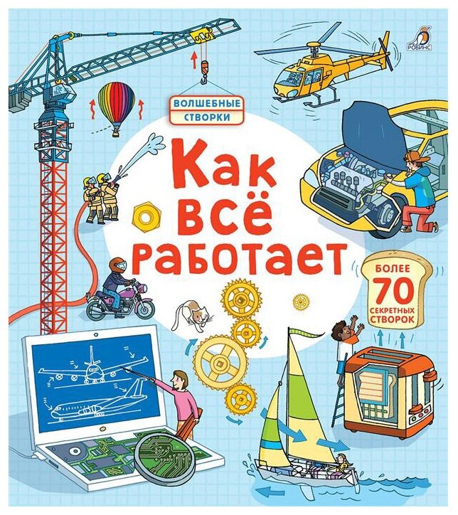 Ты знаешь, как работают разные вещи, ездят машины, плавают корабли и летают самолеты, как строят дома и как устроен водопровод, как работает бытовая техника и почему в холодильнике холодно, какая бывает спасательная с сельскохозяйственная техника? Загляни под створки (некоторые из них двойные) - и ты узнаешь много нового и сможешь рассказать об этом своим друзьям.Книга предназначена для детей от 3 лет.- Благодаря этой книге ребята получат знания в увлекательной форме, что станет отличным стимулом к получению знаний в дальнейшем.- Ребёнок сможет самостоятельно открыть каждую створку и благодаря высокому качеству картона, из которого сделаны страницы, не порвать книгу.