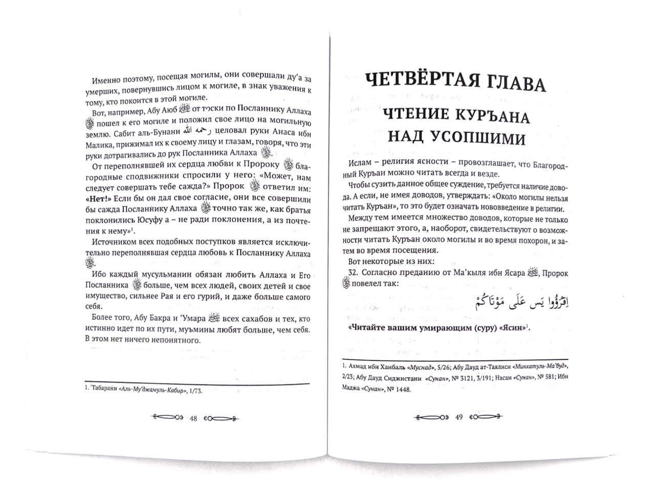 Данный труд повествует о канонах шариата относительно вопроса посещения могил: поминание усопших, чтение дуа над могилой, чтение Корана над усопшими, посещение могил женщинами и т. д.