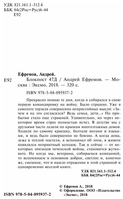 Книга: Блокпост 47Д (Ефремов Андрей); ООО "Издательство "Эксмо", 2018