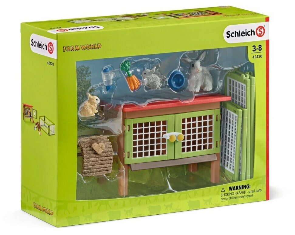 | Состав набора | вольер; клетка; фигурка кролика; 2 фигурки крольчат; поилка; миска; морковь; мостик |