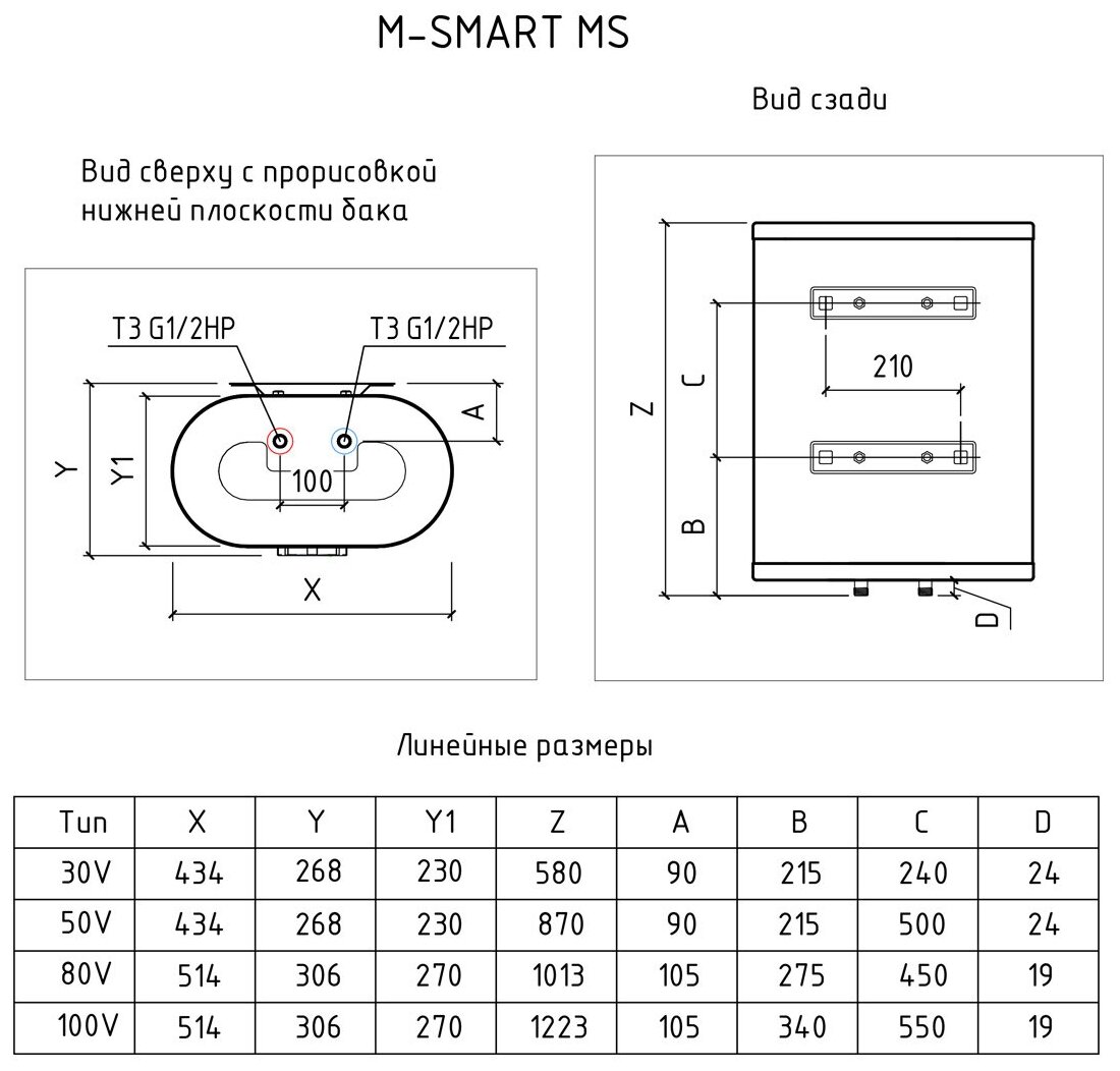 | Тип установки водонагревателя | вертикальный/горизонтальный |