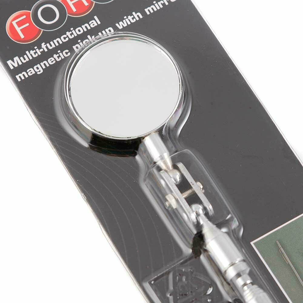 Телескопическое зеркало с магнитом и шилом 235мм FORCE - вспомогательный инструмент, который широко используется в мастерских и автосервисах для осмотра узлов и механизмов, расположенных в труднодоступных местах. Изделие дополнительно оснащено магнитом и шилом.