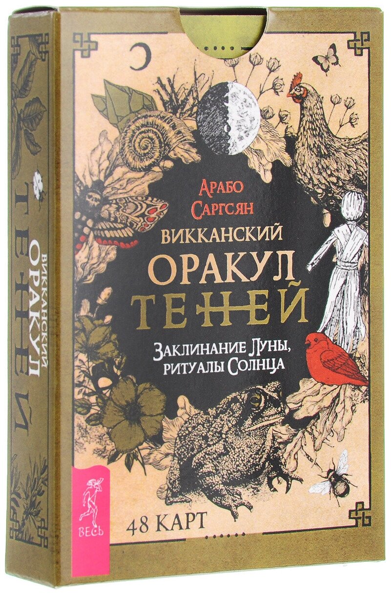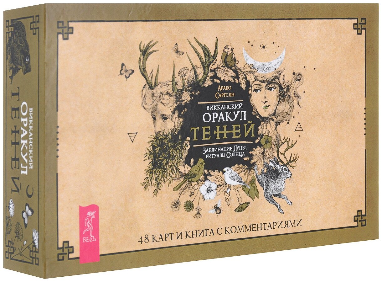 `Оракул Теней` он архаичен, прост и понятен, дик и первороден, он дышит лесом и пахнет свежей травой. На нем следы кроличьих лап, он шепотом рассказывает историю обителей мира Викки и передает вам их мудрые послания... Иллюстрации карт и саму систему придумал, разработал и воплотил в жизнь один и тот же человек викканский маг Арабо Саргсян. В Оракуле нет мастей, Старших и Младших Арканов. Здесь все как на полке в шкафчике лесной ведьмы: каждая карта индивидуальна и передает нам свою мудрость, как и любая трава или корень. Вы можете задать вопрос викканским богам и вытащить карту либо воспользоваться раскладами, данными в книге. Однако Оракул предназначен не только для предсказаний, но и для магической работы. В книге вы найдете разные необычные задания: вы будете проводить с картой день, создавать из колоды талисманы и амулеты, сжигать карты, сшивать, раскрашивать и т. д. Необязательно следовать викканской вере, чтобы пользоваться этими картами. Зеленые боги знают, что вам посоветовать вне зависимости от вашей религии (Арабо Саргсян).