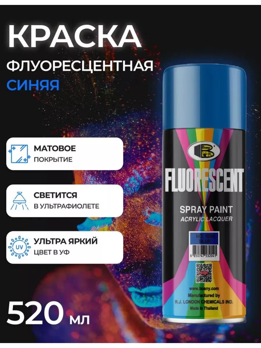 | Особенности | Из-за входящих в состав краски пигментов флуоресцентная краска начинает светиться в ультрафиолетовом свете. |
