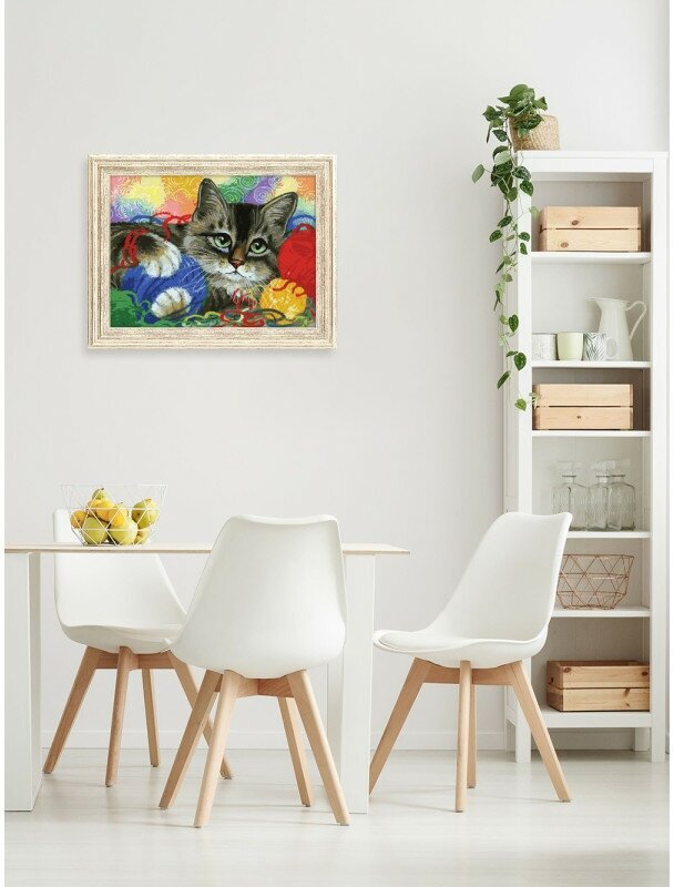 Роспись по холсту Белоснежка Котик с клубочками 30*40см. Картина по номерам (786-АS)